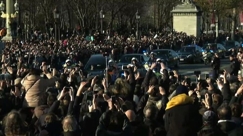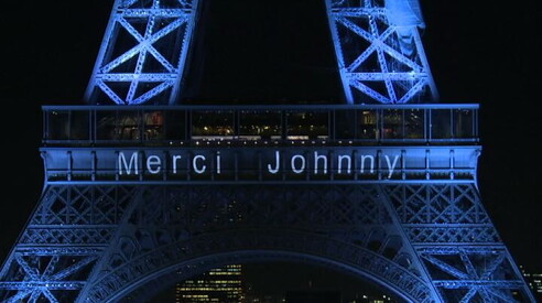 La Francia ringrazia Hallyday: sulla Tour Eiffel "Mercy Johnny" Funerali con corteo sugli Champs-Elysées, immagini senza commento 09 DIC 2017