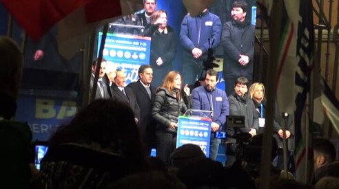 Emilia-Romagna, Salvini contestato chiude la campagna elettorale Piazza Ravenna piena a metà, Berlusconi e Meloni con leader Lega 24 GEN 2020