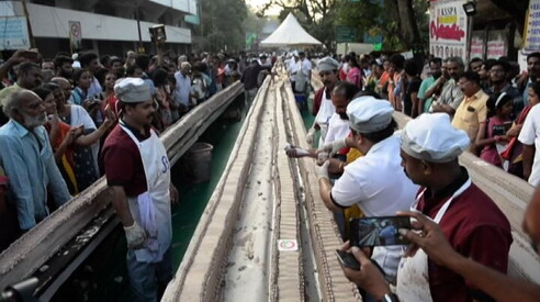 India, oltre 1.500 pasticceri per una torta record lunga 6,5 km Alla vaniglia con sopra il cioccolato, pesa 27mila kg 16 GEN 2020