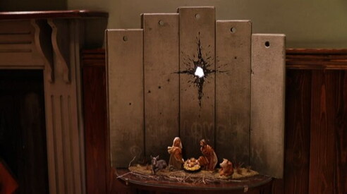 "Scar of Bethlehem", ecco il presepe di Banksy davanti a un muro Al Walled Off Hotel di Betlemme con le scritte Amore e Pace 21 DIC 2019