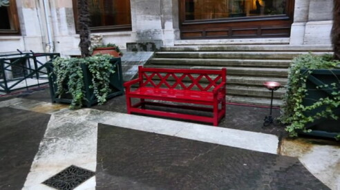 Una panchina rossa a Montecitorio contro la violenza sulle donne Con la targhetta con numero anti-violenza 1522; Fico: telefonate 25 NOV 2019
