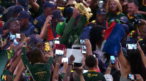 Rugby, il Sudafrica campione del mondo torna a casa con la Coppa Accoglienza esultante per gli Springboks 06 NOV 2019