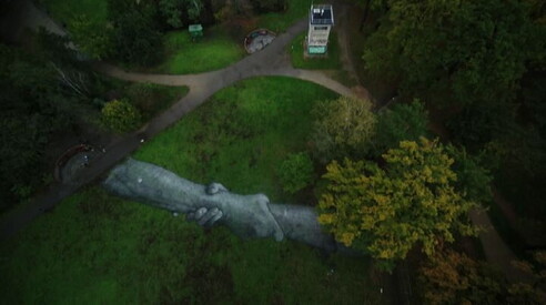 Mega-affresco nel parco per i 30 dalla caduta del Muro di Berlino Due grandi mani si stringono, l'opera dell'artista francese Saype 05 NOV 2019