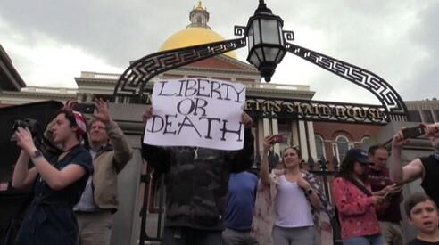 Migliaia a Boston contro il lockdown: noi americani nati liberi La protesta davanti alla sede del governatore del Massachusetts 05 MAG 2020