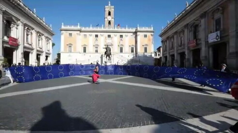 Europee 2019, maxi striscione Ue in piazza del Campidoglio a Roma Iniziativa delle associazioni EuropaNow! e Area Civica 23 MAG 2019