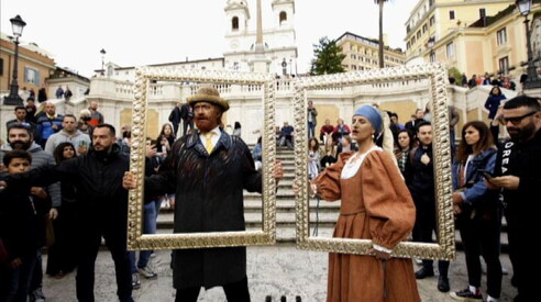 A Piazza di Spagna Antonacci e Pausini stile Van Gogh e Vermeer Tanti fan e curiosi per un assaggio del tour "Laura Biagio Stadi" 15 MAG 2019