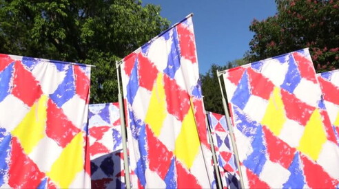 Biennale d'arte, le bandiere di Joe Tilson presentate da Swatch Installazione site specific dell'artista britannico classe 1928 14 MAG 2019