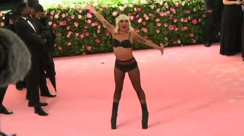 Il divertente streap tease di Lady Gaga sul red carpet del Met A New York il gala che inaugura la mostra del Costume Institute 08 MAG 2019