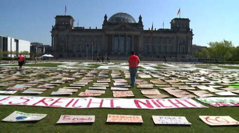 I cartelli di Fridays for future davanti al Parlamento tedesco Centinaia gli appelli per il clima del movimento ambientalista 24 APR 2020