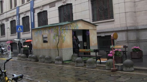 Fuorisalone, la casetta Corepla fatta con plastica pescata nel Po Durante la design week due street artist al lavoro per decorarla 11 APR 2019