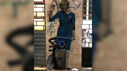 Brexit, Murales sulla May nel centro di Milano: l'autore è Tvboy Lo street artist crea anche 2 graffiti su legittima difesa e D&G 05 APR 2019