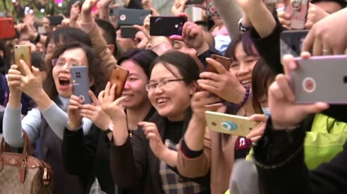 Le attività ripartono e una folla applaude il presidente cinese Xi Jinping nel nord ovest del Paese, sembra tornata la normalità 23 APR 2020