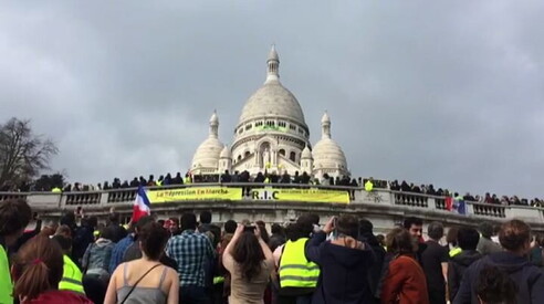 Parigi, striscioni gialli sul Sacro Cuore a Montmartre Migliaia di gilet jaune in marcia nella capitale francese 23 MAR 2019