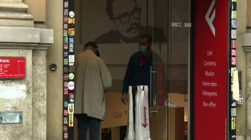 Nel Lazio librerie riaperte con gel igienizzante e distanziamento Nelle immagini un negozio della catena Feltrinelli a Roma 20 APR 2020