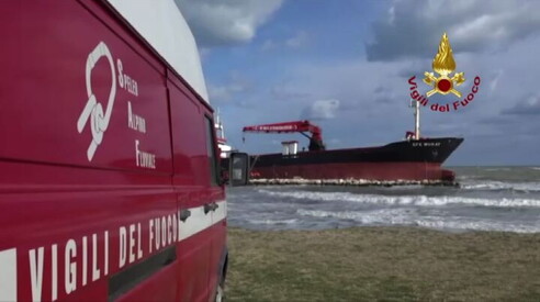 Continuano a Bari le operazioni per disincagliare l'Efe Murat Vigili del fuoco al lavoro per scongiurare disastro ecologico 26 FEB 2019