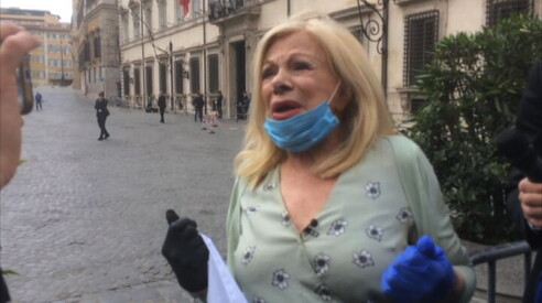 Sandra Milo si incatena alla transenna e viene ricevuta da Conte L'attrice a Palazzo Chigi chiede aiuto per lavoratori spettacolo 27 MAG 2020