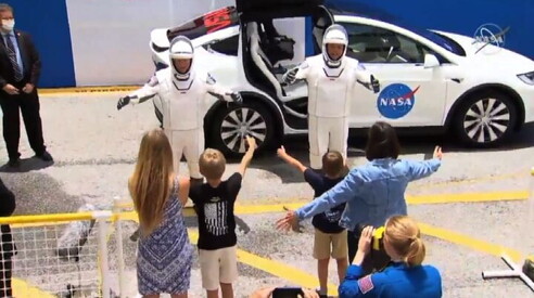 Spazio, astronauti Behnken e Hurley in Tesla alla rampa di lancio Imbarco sulla navetta Crew Dragon di SpaceX 27 MAG 2020