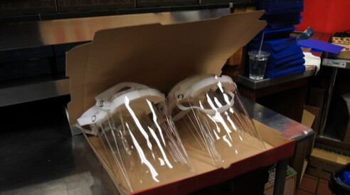 Una pizzeria di Chicago sforna 1.300 visiere protettive al giorno Il proprietario di Dimo's pizza: mancano a chi è in prima linea 17 APR 2020