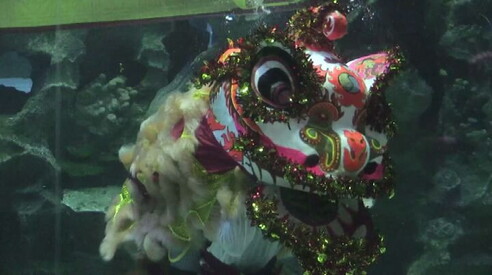 Un leone danza sott'acqua per il nuovo anno lunare in Malaysia Eseguita da sub professionisti, una novità per i festeggiamenti 30 GEN 2019