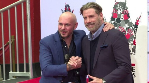 Il rapper Pitbull lascia le proprie impronte a Hollywood Per la cerimonia anche l'attore John Travolta 15 DIC 2018