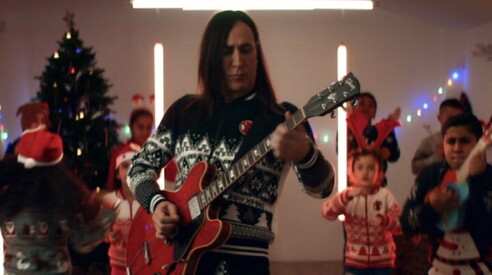 Manuel Agnelli natalizio fa Jingle Bells rock in mezzo ai bambini Aderisce all'iniziativa Christmas Jumper Day di Save the Children 05 DIC 2018