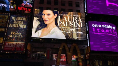 "Congratulations", un'insegna per Laura Pausini a Times Square Per celebrare la vittoria al quarto Latin Grammy Award 29 NOV 2018