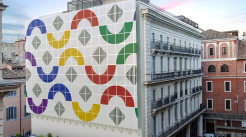 Il centro di Roma si trasforma con la modernità di Daniel Buren Installazione -facciata di quello che sarà un hotel a 5 stelle 09 NOV 2018