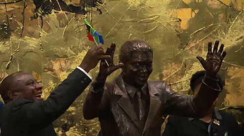 Il momento in cui viene inaugurata la statua di Mandela all'Onu Con Ramaphosa e Guterres, a cento anni dalla sua nascita 24 SET 2018