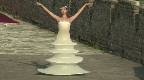 Spettacolare sfilata Pierre Cardin sulla Grande Muraglia cinese Le modelle arrivano in sneakers e si cambiano in cima 20 SET 2018
