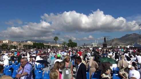 In migliaia a Palermo per la visita del Papa: "Chiediamo pace" Previste oltre 80.000 persone, la messa al foro italico 15 SET 2018