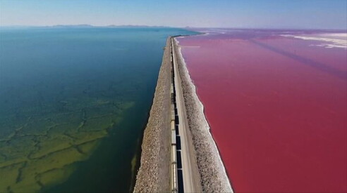Usa, il Great Salt Lake nello Utah visto da un drone Blu verdastro e rossiccio, le due porzioni appaiono molto diverse 15 SET 2018