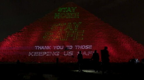 "State al sicuro, state a casa": messaggio sulle piramidi di Giza Suggestivo spettacolo di luci e colori sulla Piramide di Cheope 31 MAR 2020