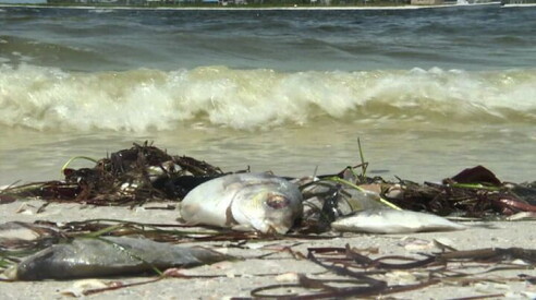 Marea rossa di alghe tossiche fa strage di pesci in Florida Recuperate oltre cento tonnellate di carcasse di animali marin 17 AGO 2018