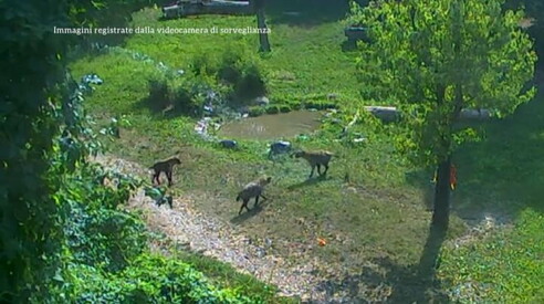 La doccia rinfrescante di tre iene del Parco Natura Viva A Bussolengo (Verona). Le immagini senza commento 03 AGO 2018