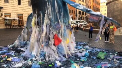 Due balene invase dalla plastica, Greenpeace al Pantheon "Contro la situazione dei mari italiani in grave pericolo" 05 LUG 2018