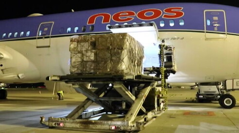 Malpensa, l'atterraggio del volo Neos con gli aiuti della Cina Operazione coordinata dall'Ambasciata italiana in Cina e Alpitour 24 MAR 2020