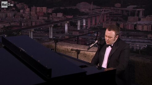 Suggestivo omaggio alla ripartenza di Genova di Raphael Gualazzi Sulle note di "Genova per noi" con sullo sfondo il nuovo ponte 25 MAG 2020