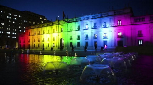 Cile, l'arcobaleno su La Moneda per la giornata contro l'omofobia Il palazzo presidenziale illuminato di notte 18 MAG 2018