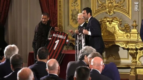 Mattarella a Milan-Juve: "Non posso tifare, sono imparziale" Al Colle l'abbraccio tra Buffon e l'ex Bonucci 08 MAG 2018