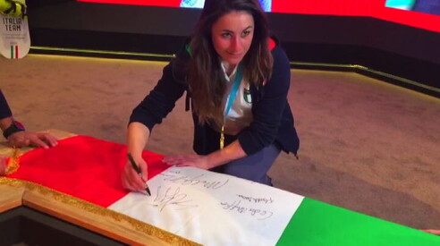 PyeongChang, Sofia Goggia firma la bandiera italiana A Casa Italia dopo l'Oro nella libera 22 FEB 2018