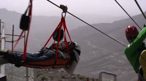 La carrucola da Guinness per volare a 150 chilometri all'ora Costruita negli Emirati Arabi Uniti a 1600 metri d'altitudine 01 FEB 2018