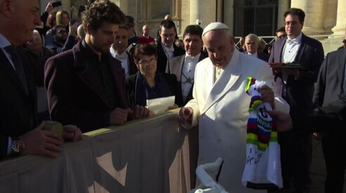 Ciclismo, Peter Sagan regala una bici a Papa Francesco Incontro ravvicinato tra il campione slovacco e Bergoglio 24 GEN 2018