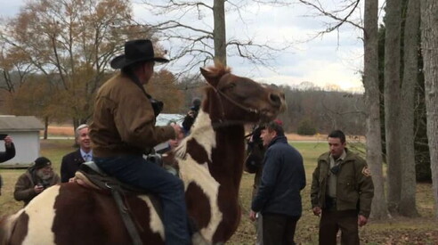Al seggio a cavallo per votare, è candidato repubblicano Alabama E' Roy Moore, accusato di molestie; immagini senza commento 12 DIC 2017