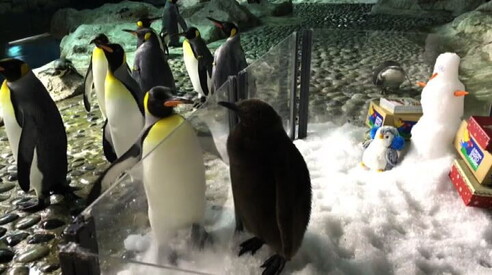 "Ti presento i miei": il cucciolo di pinguino a Singapore Due mesi, sei chili; il gruppo degli adulti è curioso 13 DIC 2017