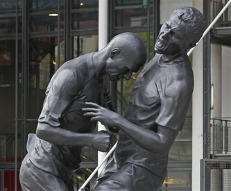 Una statua della testata di Zidane a Materazzi davanti al Centro Pompidou a Parigi (Foto Ap)