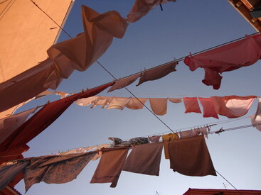Recarsi da eco-fresh con una quantità di mutande, di magliette bianche t-shirt e maglie a colori in cotone pesante con le maniche lunghe, di calzini, di pantaloni da uomo e da donna, di corpetti, di lenzuola da casa e da barca multicolori, di felpe rosse, più un fazzoletto, vuol dire godersi per un’oretta e mezza, compresa pausa caffè e completamento della lettura dei giornali, la bella giornata di luglio, e la vita nonostante tutto. E capire che i momenti di felicità non sono mai trascurabili, anche quando si dissimulino per tali. L’asciugatura è il momento magico e finale, la purificazione ipnotica di ogni stato d’animo nerastro, di ogni sospetto sull’esistenza e la società, e persino dei dubbi che signorilmente si farà in modo di coltivare sulla propria anima. Nel grande oblò, a mano a mano che Eolo soffia a 60 gradi di calore l’energia risanatrice dell’umido che solum è sua, indumenti e biancheria prendono a rincorrersi in senso orario, pausa, in senso antiorario, e si gonfiano e si mescolano, e ruotano e vorticano felici di ritrovare equilibrio termico e natura originaria, e tu te ne stai lì pieno di pensieri svaniti, vuoto di preoccupazioni attuali, in preda a un deliquio visivo e mitico cui seguirà il piacere tattile, quando the end sarà scritto nei display che contano i minuti, del materiale ritrovato, altro che il tempo, e della sua nuova piegatura perché sia riposto in sacchetti e borse. Due giovani donne belle e benintenzionate, che sono state con me all’occasione, due clienti fresche della lavanderia, credo parenti del farmacista Homais, mi hanno un po’ rimproverato perché è meglio, dicevano, asciugare con il sole, e appendere con le belle mollette che pure avevo comprato previdente, perché così si risparmia energia sfruttando l’astro. Ho subito messo cinquanta centesimi in più, come supplemento di tempo asciugatore, e ho pensato che il bucato tecnologico è perfino più bello del sole.