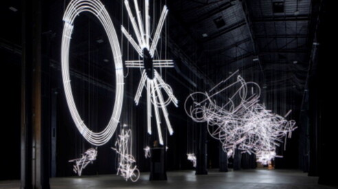 Un illuminato nel buio dell’Hangar I neon grandiosi di Cerith Wyn Evans tra linee e corpi celesti Luca Fiore 30 GEN 2020
