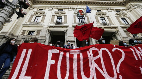 La Azzolina sta con gli studenti. Gli studenti non stanno con la Azzolina "La scuola dev'essere una priorità politica. La pandemia ha reso evidenti i problemi che l'istruzione aveva già da anni", dicono gli studenti in piazza Roberta Benvenuto 11 GEN 2021