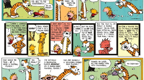 Il Cairo spiegato da Calvin & Hobbes Per descrivere il caos che regna sovrano in Egitto non c’è nulla di meglio che prendere in mano i fumetti di Calvin & Hobbes , la popolare striscia ideata e disegnata dalla metà degli anni Ottanta da Bill Watterson. Ne è convinto Marc Lynch, che su Foreign Policy spiega come gli egiziani stiano giocando dal febbraio 2011 a Calvinball, il gioco preferito dai due protagonisti della striscia di fumetti. The Tank 21 GIU 2012