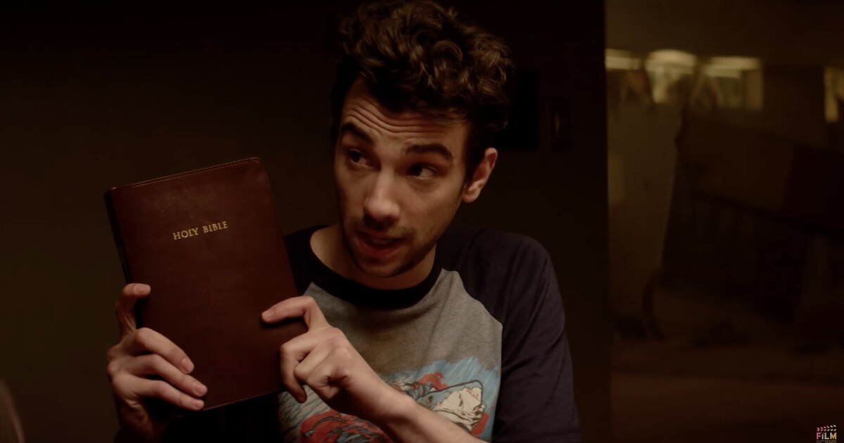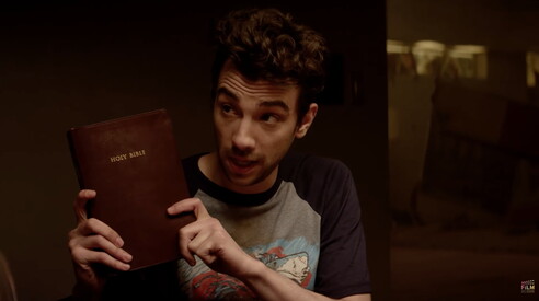 Jay Baruchel in una scena di "Facciamola finita", film del 2013 scritto e diretto da Evan Goldberg e Seth Rogen